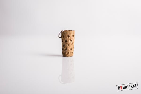 Die Dubblikat Holzanhänger sind aus kammergetrocknetem Eichenholz und Amerikanischem Nussabum gefertigt. Wohingegen bei den anderen hölzernen DUBBLIKATEN die Dubben in mühevoller Handarbeit herausgearbeitet werden, ist das Fräßen bzw. Bohren der Dubben für die Holzanhänger eine Zerreißprobe für die Nerven.