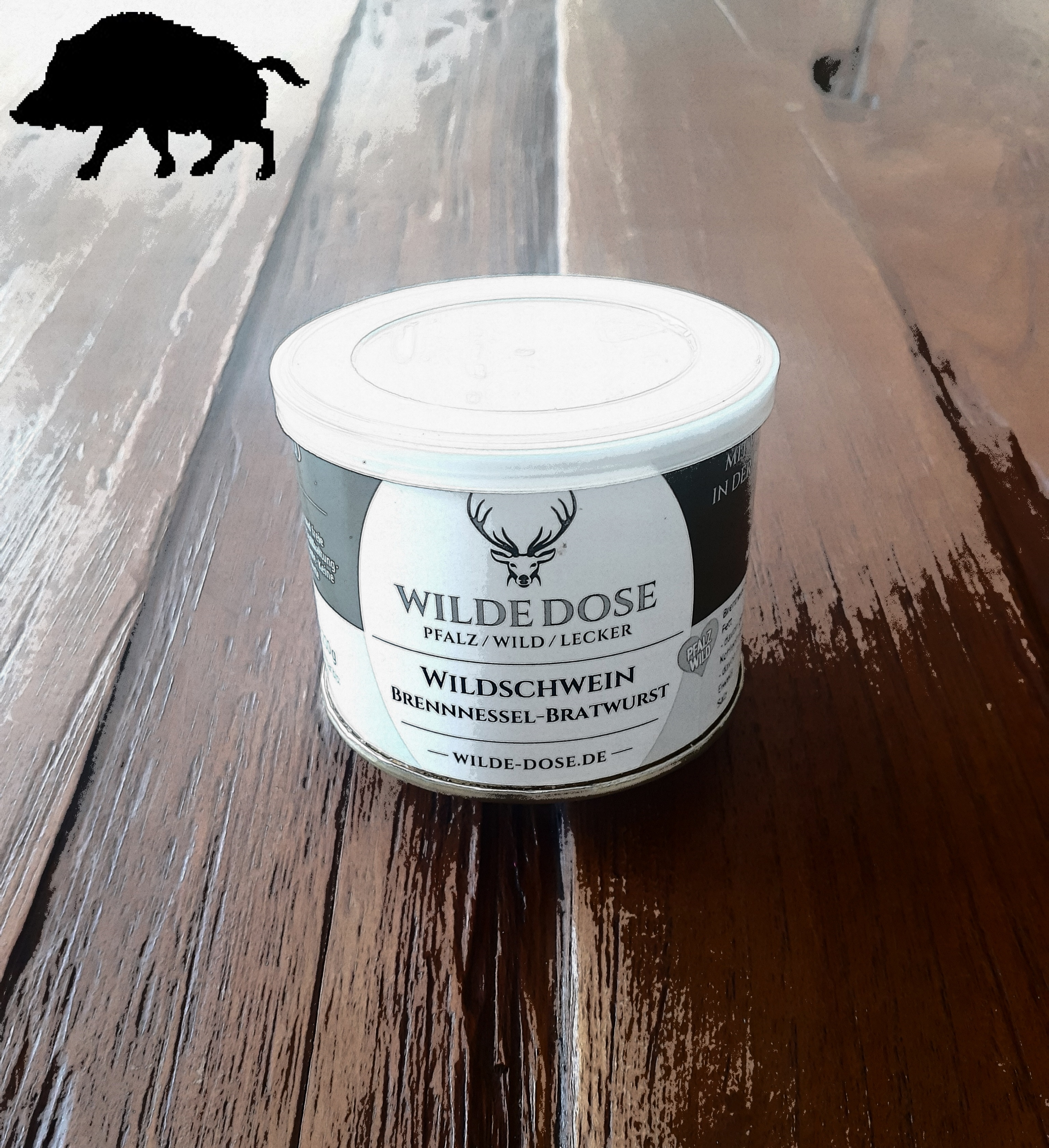 Zutaten: 26% Wildschweinefleisch, 54% Hirschfleisch, 10% Hirschleber, Speisesalz Röstzwiebel, Gewürze, Milcheiweiß, Emulgator:E472, Kräuter